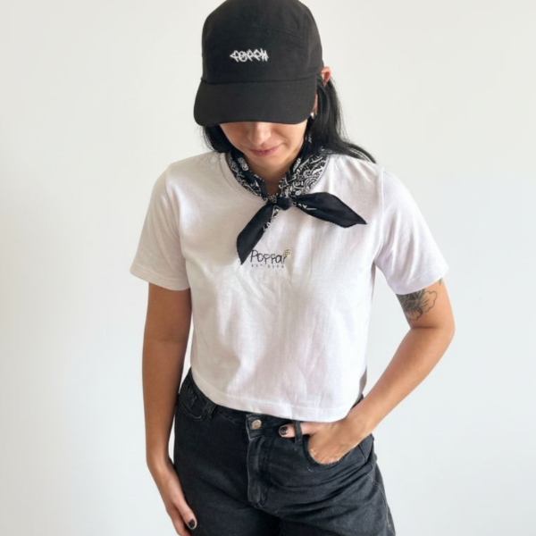 Remera corta de jersey de algodón peinado 20/1 con estampa en frente.